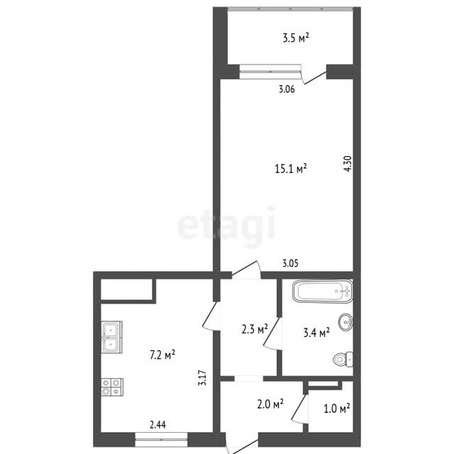 - Площадь кухни7.2 м²